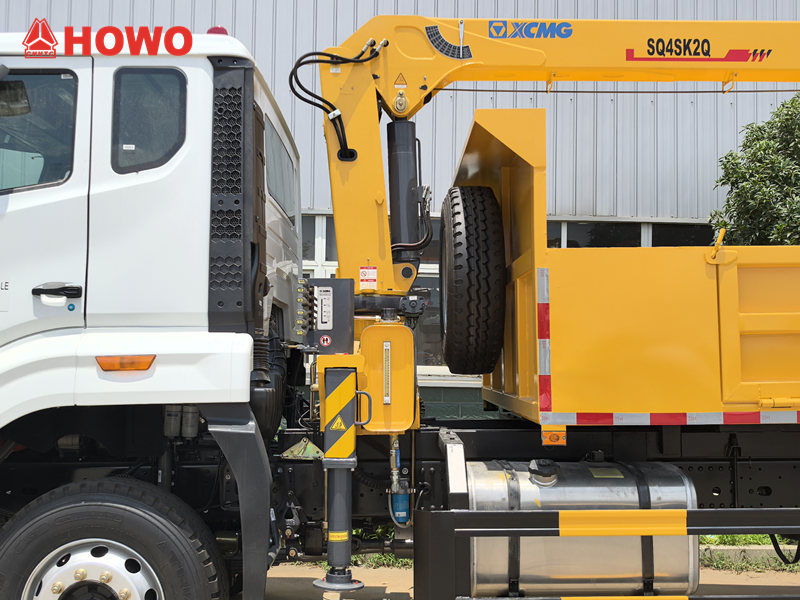 Lori la Howo lenye kiinua kreni cha tani 4 lina kreni ya boom yenye kipenyo kikubwa na upana wa uendeshaji, na hivyo kurahisisha kuinua vitu mbalimbali vizito. Mfumo wake wa majimaji uliojengewa ndani hutoa uendeshaji unaonyumbulika, uwezo mkubwa wa kubeba mizigo, na ufanisi mkubwa wa kuinua. Lori pia lina kipengele cha kutupa taka kwa ajili ya kupakua vifaa haraka, kuokoa muda na juhudi.