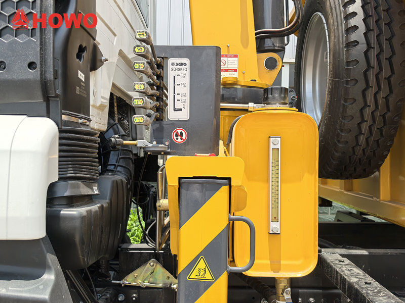 Lori la Howo lenye kiinua kreni cha tani 4 linajivunia uwezo wa kipekee wa kubeba mizigo na nguvu ya kimuundo, likiwa na uwezo wa juu zaidi wa kuinua wa tani 4 na torque ya kuinua ya tani 10. Mfumo wake wa majimaji unajivunia kiwango cha mtiririko cha lita 25/dakika, uzito usio na kikomo wa kilo 1,271, na mzunguko wa 360°, na kuwezesha uendeshaji rahisi katika mazingira mbalimbali, ikiwa ni pamoja na maeneo ya ujenzi na gati.