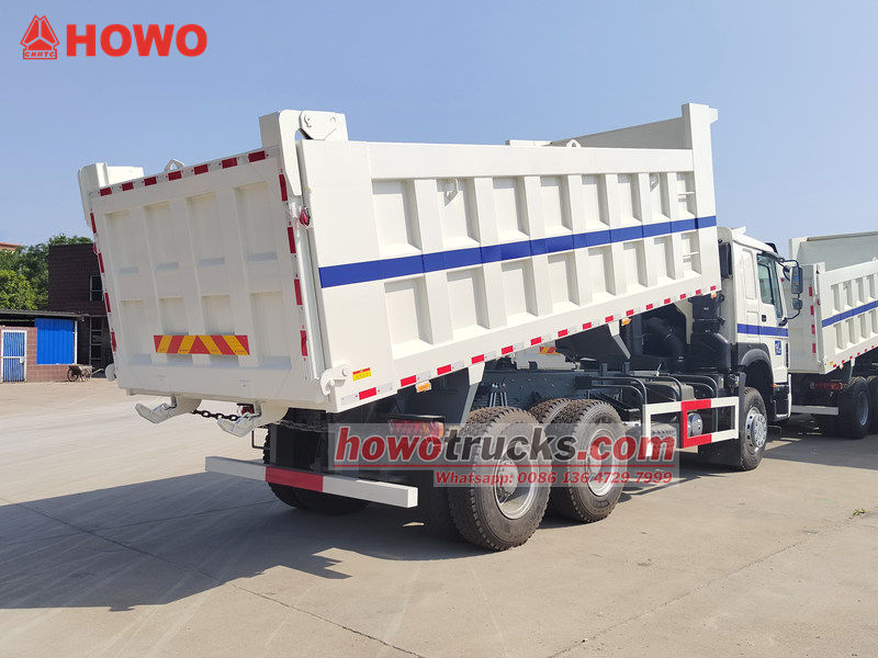 Lori la kutupia la HOWO 6x4 limerekebishwa kwa msingi wa chasisi ya HOWO HW76, lenye msingi wa gurudumu wa 3200+1400mm, lenye injini ya dizeli ya WP10.380E22 ya 380hp, gia ya HW19710, gia ya mbele 10, gia ya nyuma 2, na sanduku la kutupia lililotengenezwa kwa chuma cha kaboni lenye unene wa pembeni ni 8 mm, Unene wa chini ni 10 mm, 5200x2300x1400mm, Kuinua sehemu ya juu ya mbele, kuinua imara, upakiaji safi na wa haraka, milango ya nyuma inaweza kufunguliwa, na gari linadhibitiwa na vali ya kudhibiti upande wa dereva, ambayo ni rahisi kuendesha.