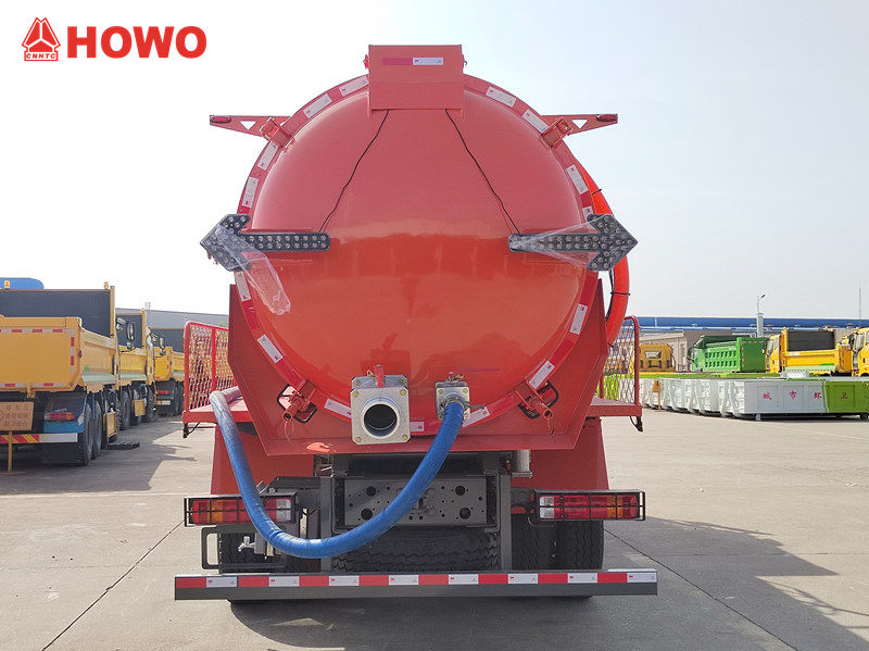 Faida kubwa ya lori la kufyonza utupu la HOWO liko katika muundo wake maalum, unaowezesha usindikaji wa haraka wa tope, maji taka, na mashapo. Likiwa na pampu ya utupu yenye nguvu kubwa, linajivunia ufanisi wa juu wa kufyonza, kwa kawaida hukamilisha tanki kamili kwa dakika 5 tu, likiwa na safu ya kufyonza ya hadi mita 8, na kuboresha kwa kiasi kikubwa ufanisi wa uendeshaji. Utendaji huu wa juu huwezesha kukamilisha kazi haraka, kupunguza uingizaji wa nguvu kazi, wakati wa kushughulika na vizuizi vya ghafla au shughuli kubwa za kuondoa chokaa.