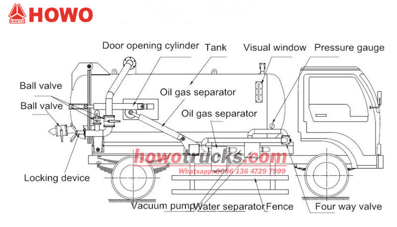 ♦Muundo mkuu wa lori la kufyonza utupu hutumia pampu ya utupu kuunda shinikizo kali hasi ndani ya tanki, na kufyonza taka za kioevu au nusu-maji kama vile maji taka, uchafu, na kinyesi ndani ya tanki la kuhifadhia. Kufyonza huku kwa nguvu kunahakikisha uendeshaji mzuri.