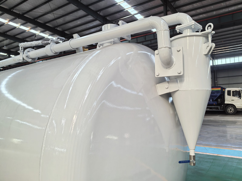 ●Wakati wa kufyonza, pampu ya utupu huamilishwa, na kusababisha shinikizo kali hasi ndani ya tanki lililofungwa. Kutokana na tofauti ya shinikizo kati ya ndani na nje ya tanki, vimiminika kama vile maji taka, tope, au kinyesi huvutwa haraka ndani ya tanki kupitia bomba la kufyonza.