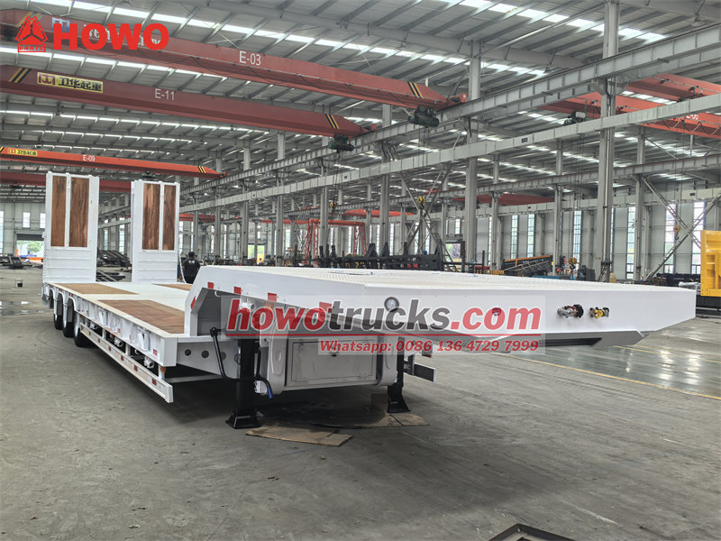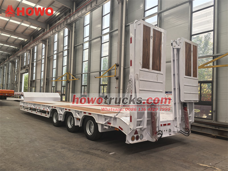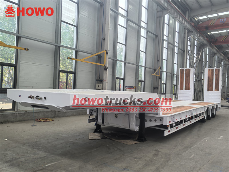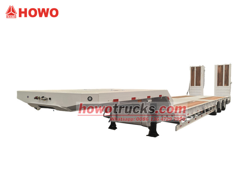 Trela ya chini ya tani 45 yenye ekseli 3 ni gari iliyoundwa mahsusi kwa ajili ya kusafirisha mitambo na vifaa vikubwa. Imewekwa kiunganishi cha gurudumu la tano cha 50# JOST na mfumo wa kusimamisha hewa wenye kifaa cha kuinua ekseli ya mbele, ikiwa na ekseli tatu za kujiendesha zenye tani 13. Trela imewekwa na mfumo wa breki wa WABCO EBS ili kuhakikisha usalama wa kuendesha. Njia za majimaji zilizoundwa maalum na bed tambarare zimetengenezwa kwa sakafu maalum ya mbao, kutoa ulinzi bora wa kuzuia kuteleza. Ikilinganishwa na mifumo ya kawaida, ekseli zake za kujiendesha zenyewe hupunguza uchakavu wa matairi, huku utendaji wa kuinua kusimamishwa kwa hewa ukiongeza uwezo wa kupitika bila mzigo. Deki ya mbao husaidia kupunguza upinzani wa msuguano na kuboresha ufanisi wa upakiaji na upakuaji.