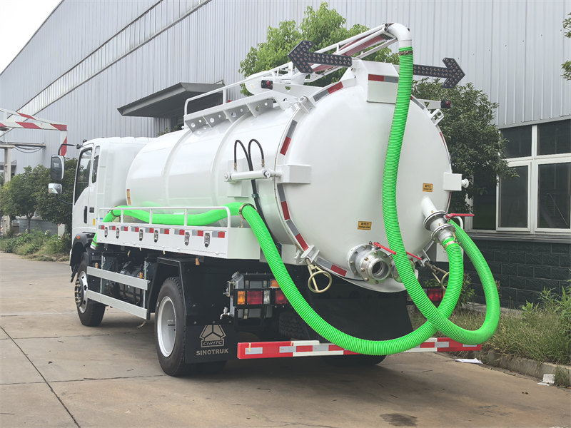 Lori la tanki la utupu la HOWO 10000L ni gari lenye nguvu la usafi lililojengwa kwenye chasisi ya HOWO 4×2 na lenye injini ya 160HP. Linafyonza na kutoa maji taka na tope kwa ufanisi kwa kutumia shinikizo hasi linalotokana na pampu ya utupu. Likiwa na fimbo ya kufyonza kinyesi iliyo na vifaa vya ziada, linaweza kusafisha matangi ya maji taka na pia kuondoa vizuizi kwenye mabomba ya maji taka, na kuifanya kuwa gari lenye matumizi mengi. Lori hili la maji taka la HOWO hufanya kazi kwa ufanisi mkubwa na uwezo mkubwa, na kuifanya kuwa chaguo bora kwa usafi wa manispaa, mashamba ya mifugo, na matumizi mengine kama hayo.