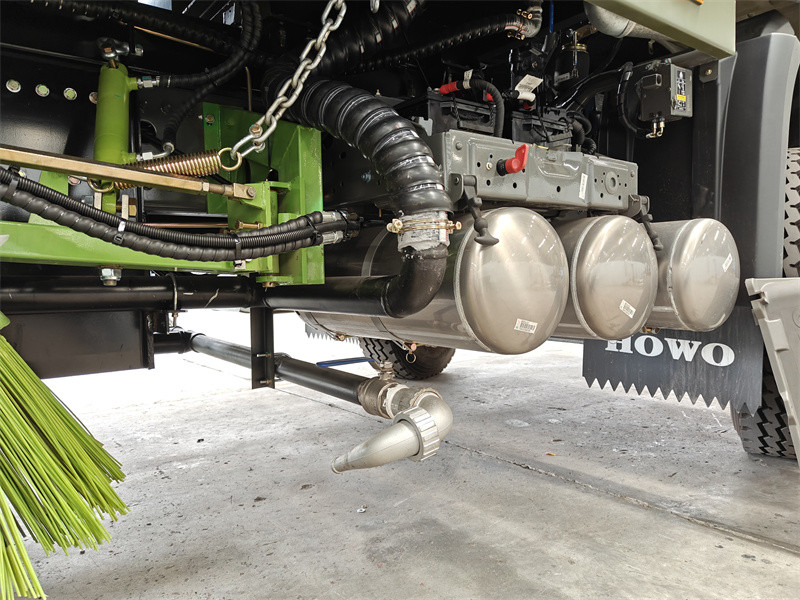 11500YaKisafishaji cha barabarani cha Howo 12 cbm kilichowekwa kwenye lorini chombo chenye ufanisi mkubwa wa usafi kilichoundwa kwa ajili ya kusafisha na kutunza barabara za mijini, viwanja, mbuga za viwanda, na maeneo mengine. Kina tanki la maji la chuma cha kaboni la lita 4,000 na pipa la takataka la chuma cha pua la lita 8,000. Mfumo wa kufagia unajumuisha seti nne za brashi za diski na vikombe vipana vya kufyonza, kuwezesha upana wa kufagia wa hadi mita 3.5, upana wa kufulia kwa shinikizo kubwa wa mita 2.5, na uwezo wa juu wa kufagia wa mita 60,000.³/h. Gari hutumia pampu ya Ujerumani yenye shinikizo kubwa, pampu ya maji yenye shinikizo la chini ya Hangzhou, na kifaa cha kupulizia maji cha Weiye, pamoja na kunyunyizia kwa hatua nyingi kwa ajili ya kukandamiza vumbi, na kusababisha uzalishaji mdogo wa vumbi wakati wa operesheni.