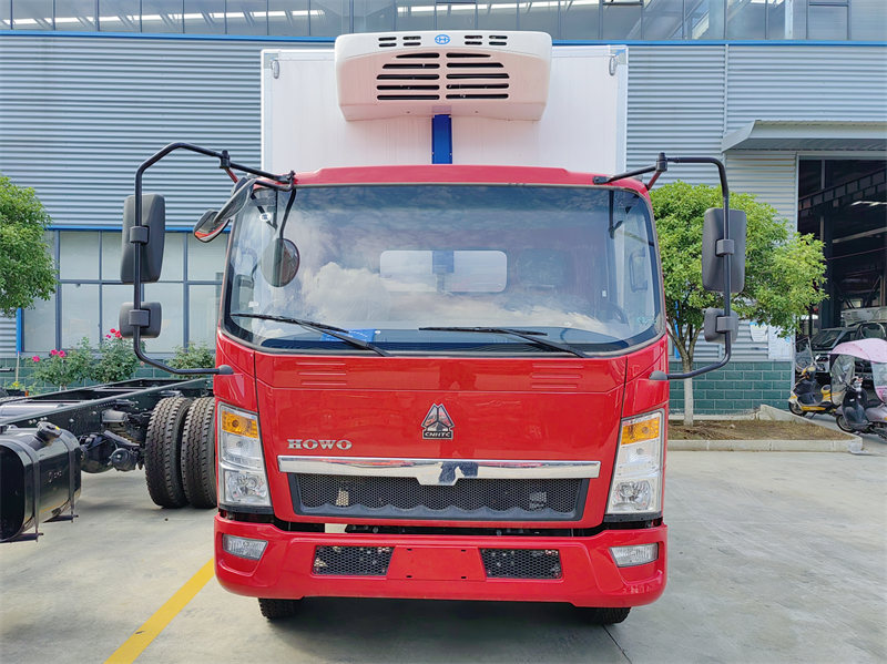 Howo 6Lori la tani lililowekwa kwenye jokofu ni gari lililoundwa mahsusi kwa ajili ya usafirishaji wa mnyororo wa baridi wa masafa marefu. Lina vifaa vya Yuchai 140HP 4 Injini ya silinda, inayotoa nguvu imara na thabiti ili kuhakikisha ufanisi mzuri wa usafirishaji chini ya hali mbalimbali za barabara. Lori kubwa la kufungia la Howo limeunganishwa na KX 55Kitengo cha majokofu 0, kinaweza kurekebisha kiotomatiki nguvu ya majokofu kulingana na halijoto ya ndani na aina ya mizigo, chenye uwezo wa kudhibiti kwa usahihi halijoto ndani ya gari ili kukidhi mahitaji ya majokofu ya bidhaa tofauti. Kitengo hiki kinatumia teknolojia ya hali ya juu ya majokofu na mfumo mzuri wa kupoeza, chenye uwezo wa kupunguza haraka halijoto ndani ya gari na kudumisha uthabiti, kuhakikisha kwamba bidhaa zinabaki katika hali bora ya halijoto wakati wa usafirishaji.