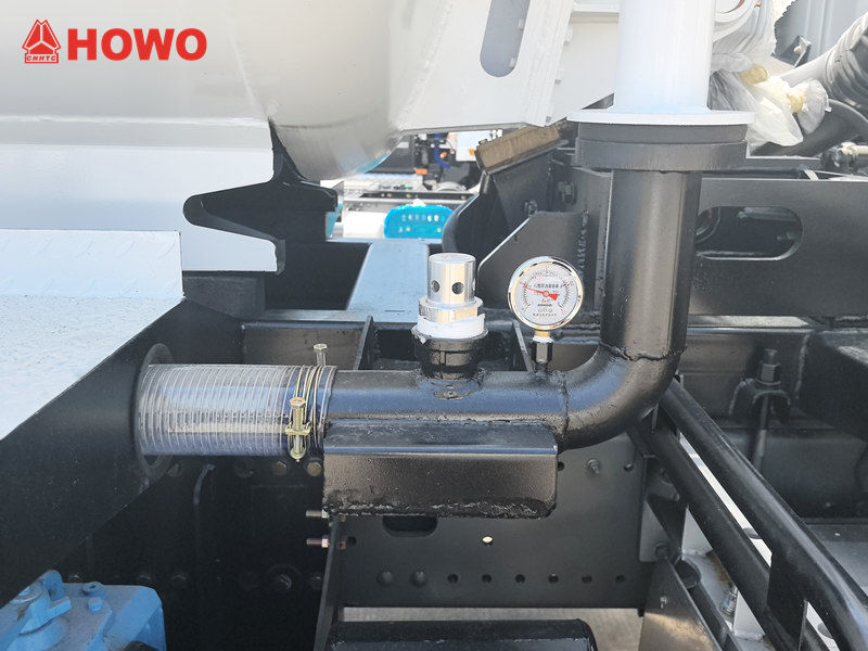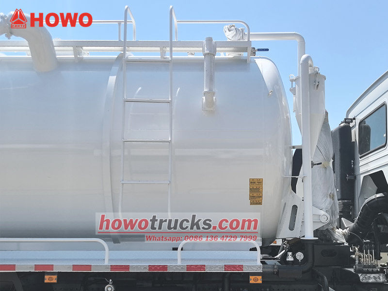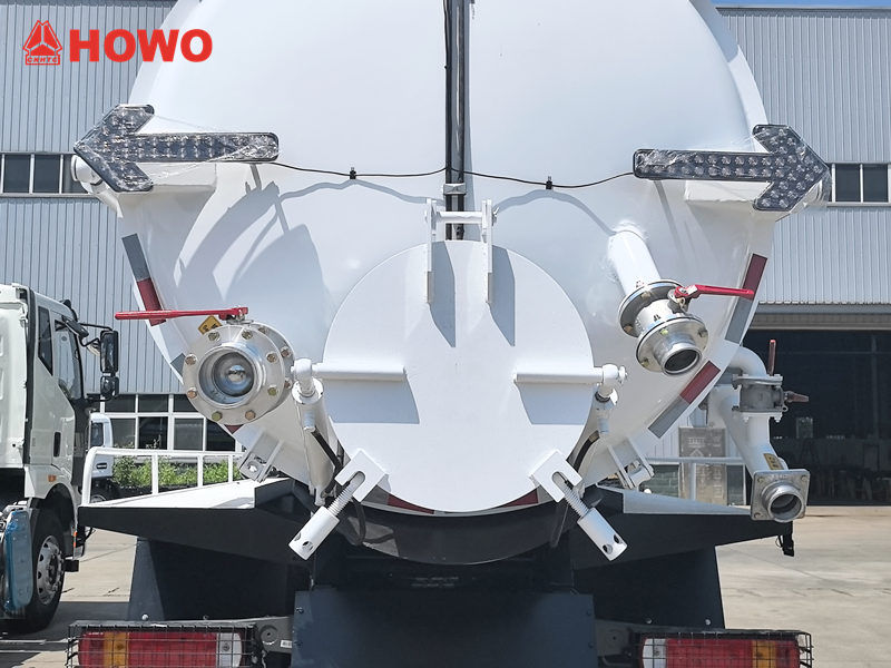 Mwili wa tanki la lori la kusukumia la Howo umejengwa kwa chuma cha kaboni chenye nguvu nyingi au chuma cha pua, na kutoa upinzani bora wa shinikizo na kutu, kuhakikisha muhuri mkali na nguvu ya kimuundo kwa matumizi ya muda mrefu. Tangi hilo limefunikwa na mipako ya kuzuia kutu ili kuongeza muda wa huduma na kupunguza gharama za matengenezo, kukidhi mahitaji ya wateja mbalimbali.