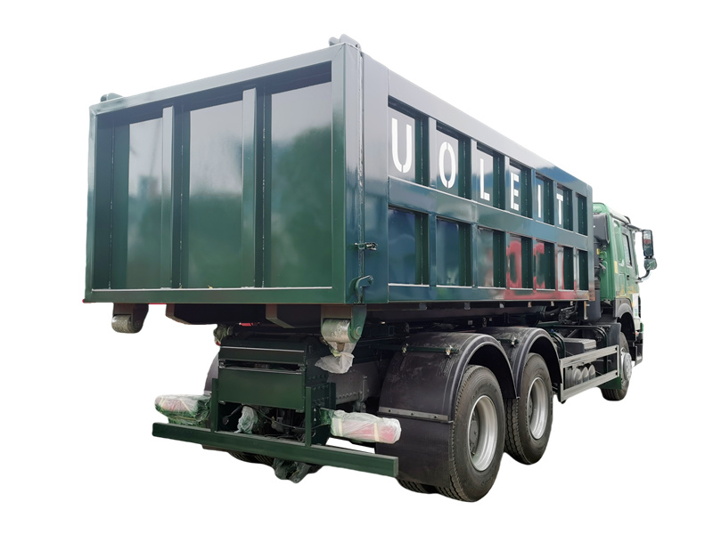 HOWO 4×4, 8×4, RHD drive is optionalLori la Hooklift Refuse Lori la HOWO la tani 20 ni gari la usafi lenye mzigo mzito linalojipakia lenyewe lililotengenezwa kwa msingi wa chasisi ya Sinotruk HOWO 6×4. Sifa yake kuu iko katika mfumo mzuri wa uendeshaji wa mkono wa ndoano, ambao hutumia mifumo ya majimaji kutekeleza kwa uhuru upakiaji, usafirishaji, na upakuaji maalum wa vyombo vya kawaida vya taka. Hii inawezesha mfumo wa usafiri wa mzunguko wa "gari moja lenye vyombo vingi," ikiboresha sana unyumbufu na ufanisi wa ukusanyaji na usafirishaji wa taka. Gari hili lina injini ya mfululizo wa WD615 iliyokomaa kiteknolojia, ikitoa nguvu ya farasi 336. Likiwa limeunganishwa na gia ya mwongozo ya kasi 10 na ekseli ya nyuma ya tani 16, inahakikisha upitishaji bora na uaminifu chini ya hali ngumu za barabara na shughuli za mizigo mizito.