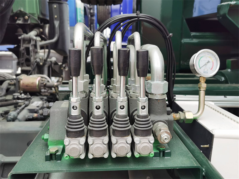▶ Mfumo wa usalama unajumuisha: vali ya kusawazisha mzigo, kufuli za majimaji zenye mwelekeo wa pande mbili, vali ya kudhibiti usalama, na utaratibu wa kufunga kontena unaodhibitiwa na majimaji.