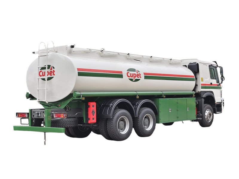 13000+13000Lori la mafuta la HOWO, linalotengenezwa na CS TRUCKS, lina chasisi ya HOWO 6×4, mwili wa tanki, mfumo wa bomba, na vifaa vya kujaza mafuta. Kimsingi imeundwa kwa ajili ya kusafirisha mafuta kama vile mafuta ya taa, petroli, na dizeli. Tangi lina uwezo wa lita 20,000 na limetengenezwa kwa sahani za chuma cha kaboni zenye nguvu nyingi, zenye vizuizi vya kuzuia mawimbi vya muda mrefu na vya mlalo vilivyounganishwa ndani ili kupunguza athari ya kioevu wakati wa usafirishaji. Tangi limegawanywa katika sehemu mbili huru, kuruhusu usafirishaji wa wakati mmoja na utoaji tofauti wa aina mbili tofauti za mafuta (km, dizeli na petroli). Lina vifaa vya kina, ikiwa ni pamoja na kifuniko cha shimo la maji cha kiwango cha Ulaya, vali ya kuzima dharura, na pampu ya mafuta yenye kiwango cha mtiririko wa 60 m³/h.
