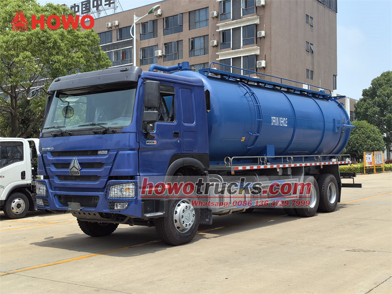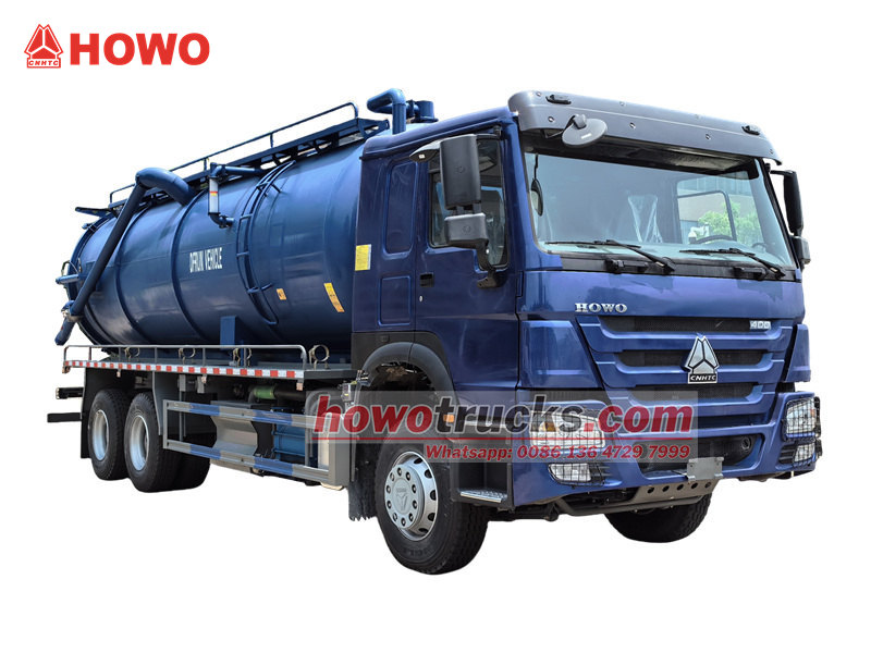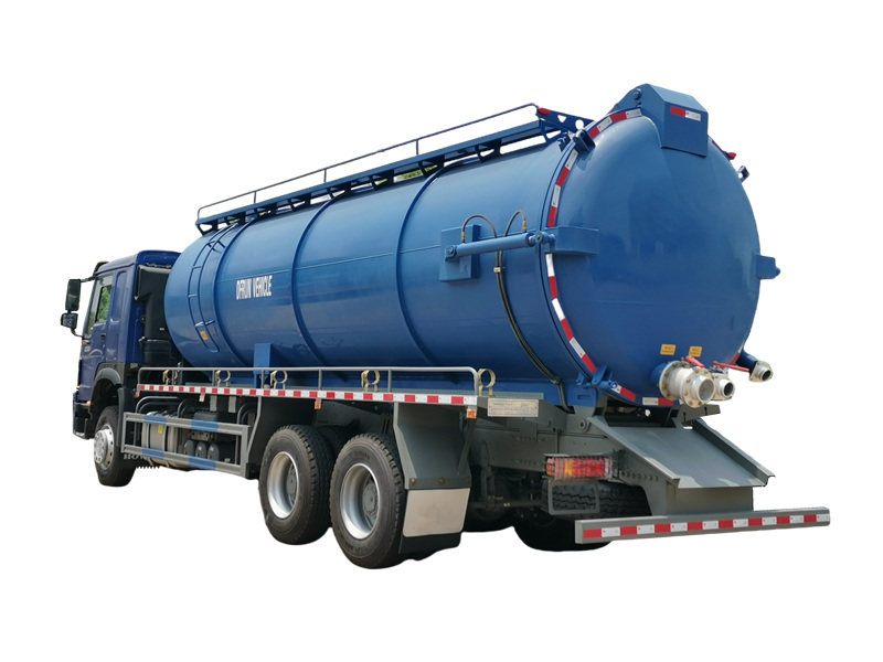 16000+16000Lori la tanki la utupu la HOWO 20000L, linalotengenezwa na CS TRUCKS, ni gari la usafi lililoundwa kwa ajili ya kusafisha na kusafirisha maji machafu, tope, na taka zingine za kioevu. Limejengwa kwenye chasisi imara ya HOWO 6×4 yenye kazi nzito, lina mfumo wa kufyonza utupu na tanki la kuhifadhia taka kwa ufanisi. Linaendeshwa na injini ya dizeli ya WP12.400E32 yenye nguvu ya farasi 400, lori hili la tanki la maji taka la HOWO limeunganishwa na gia ya mwongozo ya kasi 10 na mfumo wa breki ya hewa. Sehemu yake kuu inajumuisha pampu ya utupu ya pete ya maji yenye uwezo wa kufyonza wa mita 20.5/dakika, inayokamilishwa na bomba la kufyonza la mita 10 na tanki la chuma cha kaboni lenye unene wa 6mm. Likiwa na urefu wa kufyonza wa zaidi ya mita 9, linashughulikia kwa ufanisi kazi ngumu za kusafisha maji taka.