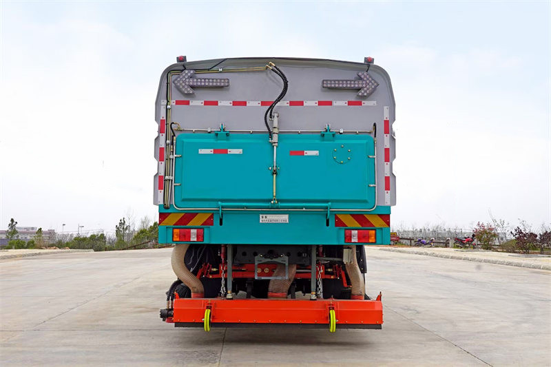 ♦ Bomu la kunyunyizia la nyuma huunda ukungu mwembamba wa maji nyuma ya lori kukandamiza kwa ufanisi vumbi la pili linalozalishwa wakati wa kusafisha.