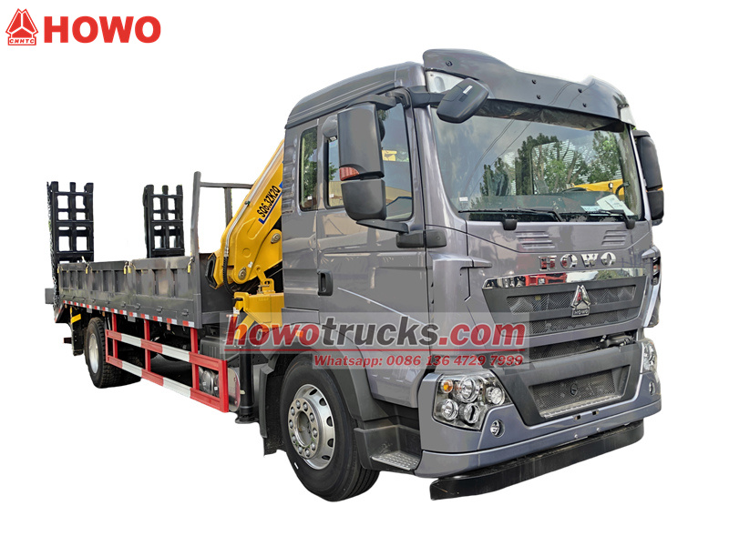 ♦ Lori la mizigo la Howo 4x2 lina kreni ya boom ya tani 6 (torque ya tani 10/urefu wa mita 8.6) na kazi ya usafiri wa tani 20..