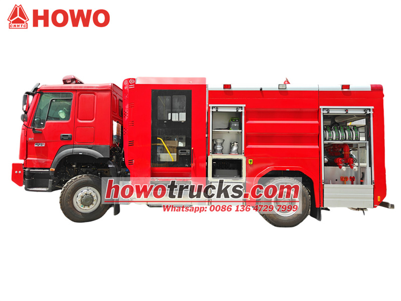 Lori la zimamoto la HOWO 4x4 lenye povu
