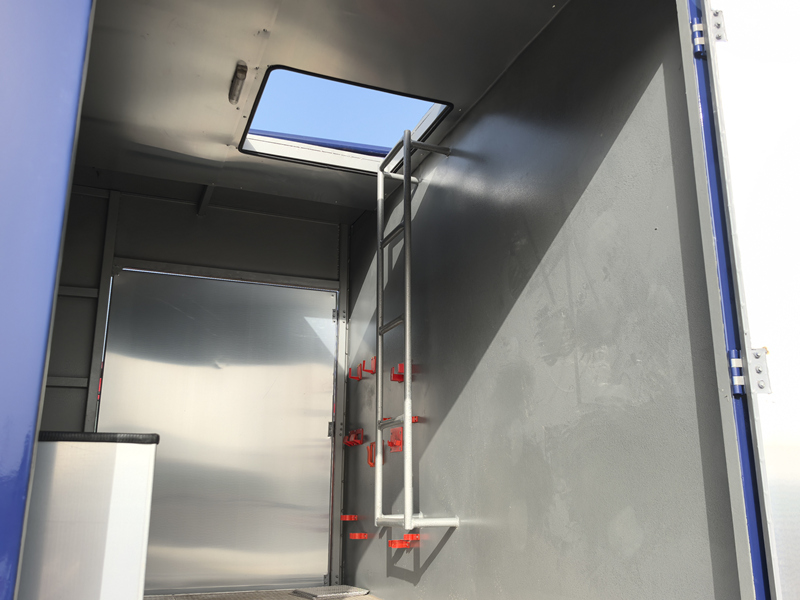 • Ufikiaji wa Paa: Ngazi imewekwa nyuma ya gari, na kuruhusu wafanyakazi kufikia paa kwa usalama na kwa urahisi.