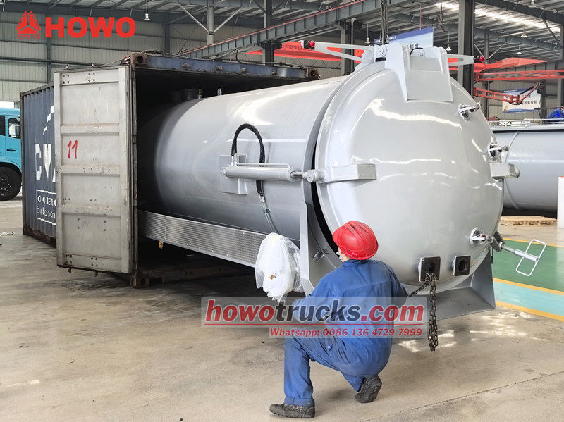 Mwili wa tanki la kufyonza maji taka la Howo 8cbm (pia huitwa kifaa cha lori la kufyonza utupu la 8cbm, sehemu ya juu ya lori la tanki la utupu la lita 8,000, kifaa cha lori la kufyonza maji taka la utupu la 8cbm, kifaa cha juu cha tanki la kutupa maji taka, muundo mkuu wa lori la tanki la utupu la 8cbm, kifaa cha lori la tanki la kufyonza maji taka, kifaa cha juu cha lori la kufyonza utupu, n.k.) itatumika kuwekwa kwenye chasisi kusafisha na kukusanya maji machafu kama vile maji machafu. Inafaa kwa kusafisha maji taka, shimo la maji taka, bwawa la maji taka, korongo, n.k.