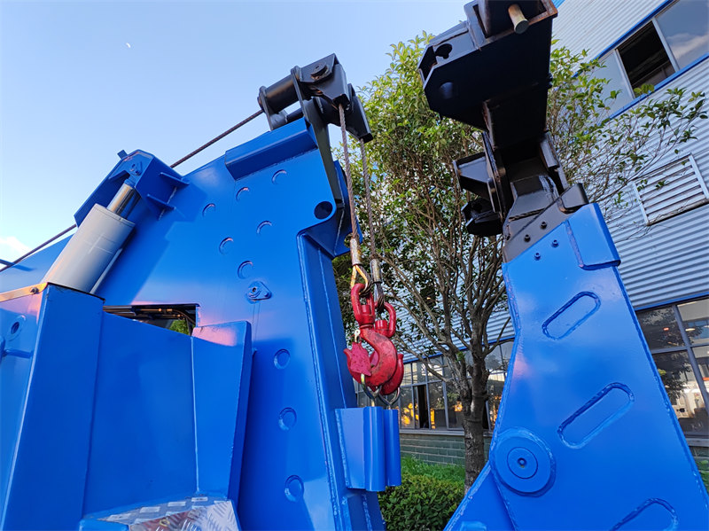 2. Kazi ya Kuinua: Boom ni vifaa muhimu kwa malori ya kukokota yenye mzigo mkubwa. Kwa kawaida huwa na kifaa cha kusukuma ili kuinua gari lililoharibika kutoka upande mmoja (au upande) au kuinua gari zima, na kuliweka upya kwa ajili ya kuinua ipasavyo. Zaidi ya hayo, malori ya kukokota yenye mzigo mkubwa yanaweza kutumia ugani na usukumaji wa boom ili kuvuta au kuinua magari kutoka barabarani au maeneo ya karibu kurudi barabarani na kuwa katika nafasi iliyosimama.