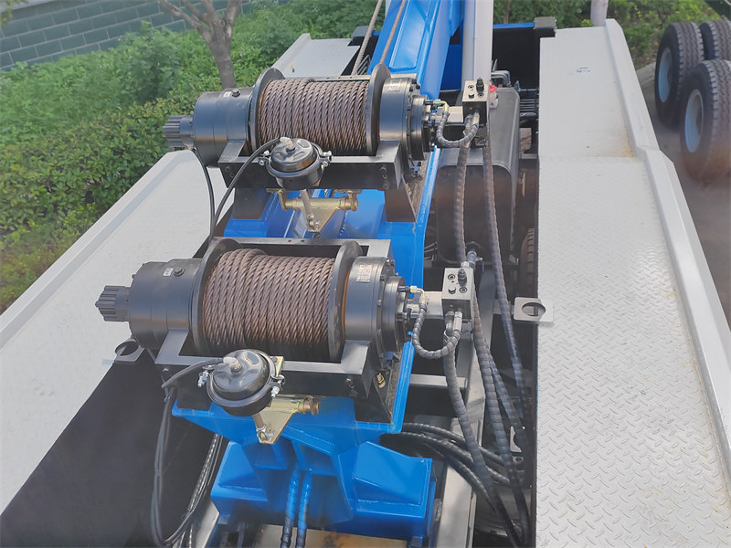 Imewekwa vipande 2 vya winchi za majimaji zenye tani 10 na kamba ya waya ya chuma ya mita 45 yenye kipenyo cha milimita 18. Winchi ni mojawapo ya vipengele vya msingi vya lori la kuvuta la HOWO 8×4. Hutumika hasa kwa kupandisha magari yenye ulemavu kwenye mkono wa kuvuta na hufanya kazi kwa uratibu na mitungi ya majimaji ili kufikia kazi kama vile kuvuta, kuinua, na kufunga magurudumu ya gari.