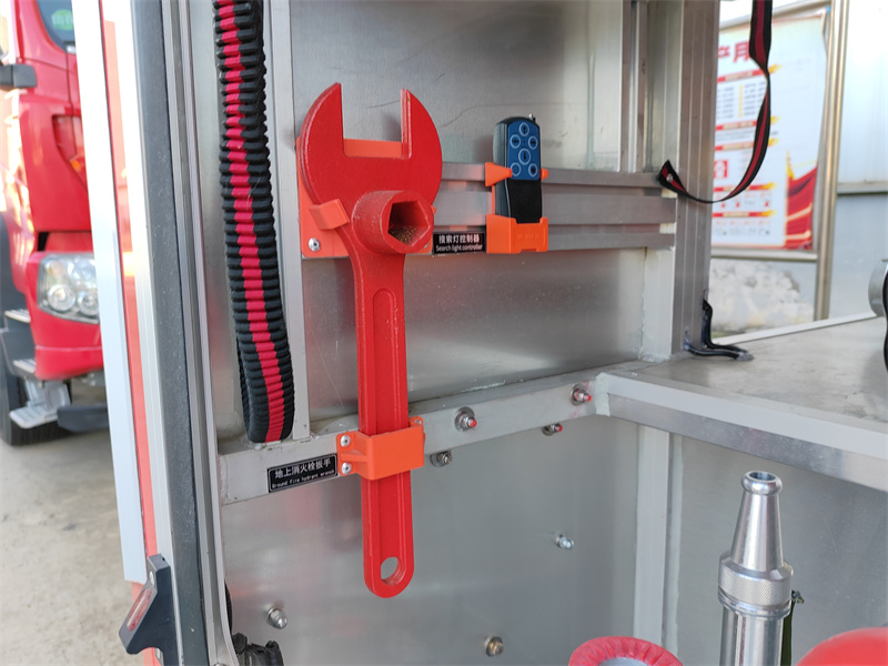 3. Kisanduku cha Vifaa vya Chini: Ipo chini ya tanki, inatoa nafasi nyingi. Ina mlango unaozungushwa na aloi ya alumini ambao ni rahisi kufungua, usiopitisha maji na usio na vumbi. Ina vifaa mbalimbali vya kuzima moto: