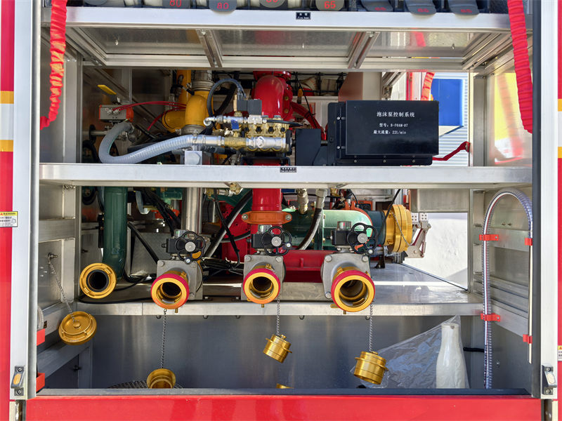 Lori la zimamoto la Howo lenye uzito wa 4x2 CAFS, lililojengwa kwenye chasisi ya ubora wa juu ya Howo C5H, linachanganya nguvu ya juu na uzalishaji wa hewa chafu rafiki kwa mazingira, lenye uwezo wa kukabiliana na maeneo mbalimbali yenye changamoto. Linajumuisha pampu ya maji, mfumo wa uwiano wa povu, na mfumo wa kubana hewa, na kuzima moto kwa kunyunyizia povu la hewa iliyobanwa. Pia lina mfumo huru wa uzalishaji wa umeme na mfumo wa taa za dharura, unaotoa mwangaza wa pembe nyingi, unaozunguka pande zote ili kuangazia haraka njia za uokoaji wakati wa moto. Jopo la kudhibiti linaweza kuchaguliwa kwa lugha na hutoa usanidi mbalimbali wa hiari ili kukidhi mahitaji tofauti.