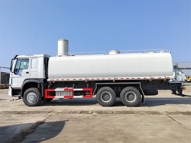 Kwa tanki kubwa la maji na vifaa vya ubora wa juu, lori la kunyunyizia maji la Howo lina uwezo wa tanki wa zaidi ya lita 20,000, likidhi mahitaji ya shughuli kubwa za kunyunyizia maji, kupunguza kujaza maji mara kwa mara na kuboresha ufanisi wa uendeshaji. Tangi la maji limetengenezwa kwa chuma cha kaboni cha ubora wa juu (Q235) na limetengenezwa kuwa mwili wa tanki wenye umbo la mviringo. Lina faida za nguvu ya juu na upinzani wa kutu, kuhakikisha maisha ya huduma ya tanki la maji.