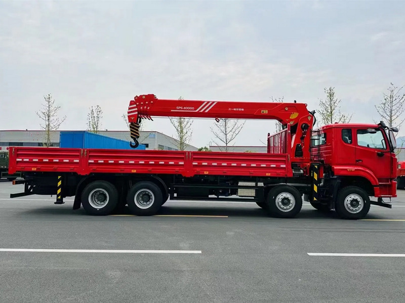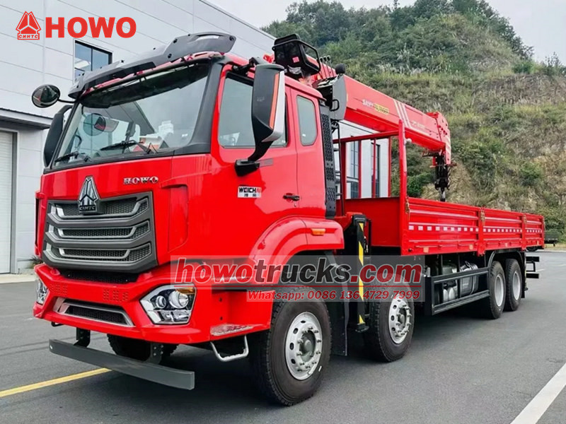 XCMG crane, UNIC crane, knuckle boom crane is optionalKreni Iliyowekwa kwenye Lori ya HOWO NX 8×4 ni gari lenye kazi nyingi nzito linalochanganya uwezo wa kuinua na kusafirisha. Lina kreni ya Palfinger SPS40000 yenye uwezo wa juu wa kuinua wa tani 16 na torque ya kuinua ya mita 40. Boom ya darubini ya sehemu tano inaenea kikamilifu hadi mita 19 na, pamoja na kazi yake ya mzunguko kamili wa digrii 360, inaruhusu uendeshaji rahisi katika hali mbalimbali za kuinua. Chasi hiyo inategemea mfululizo wa HOWO NX, unaoendeshwa na injini ya dizeli ya lita 9.7 yenye uwezo wa kutoa nguvu ya 273 kW, iliyounganishwa na gia ya kasi 10 na mfumo wa breki wa hewa ili kuhakikisha utendaji thabiti chini ya hali ngumu za kazi.