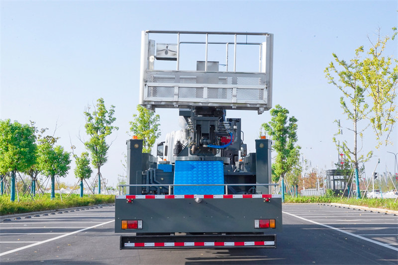 Muundo wake wa kipekee wa kichocheo cha majimaji cha aina ya H una umbali wa upanuzi wa mlalo na wima wa milimita 8,600 na una mfumo wa kufunga majimaji wa njia mbili ili kuhakikisha uthabiti wakati wa operesheni. Lori pia lina mfumo wa uendeshaji wa pande mbili wa udhibiti wa mbali wa mwongozo na usiotumia waya, mzigo wa jukwaa wenye kipimo cha milimita 2.5Kilo 0, mzunguko wa majimaji wa 360°, na vifaa vingi vya ulinzi wa usalama vilivyojengewa ndani, kama vile kikomo cha kiotomatiki cha nje ya mipaka, kifaa cha kusimamisha dharura na ulinzi wa uvujaji.