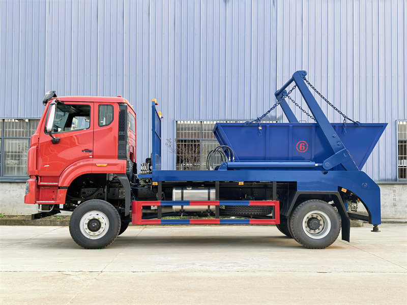 ♦ Ubunifu wa Kujipakia na Kupakua kwa Mkono wa Kuzungusha:Kwa kutumia utaratibu wa mkono wa kuzungusha majimaji, inaweza kunyakua, kuinua, kutupa, na kuweka upya vyombo vya kawaida vya taka vya uchimbaji bila kuhitaji vifaa vya ziada vya kuinua, na hivyo kupunguza kwa kiasi kikubwa gharama za kazi na muda.