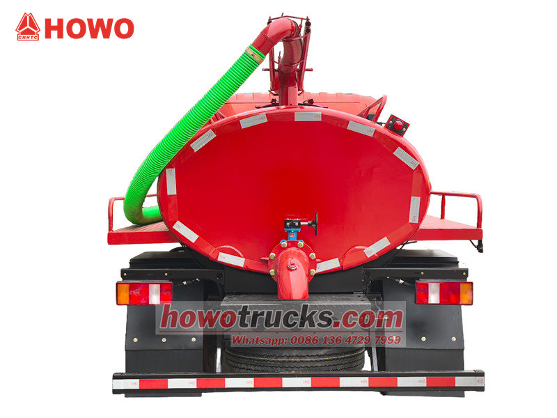 Lori la kufyonza choo la Howo lenye magurudumu 6 la lita 5000 (pia huitwa lori la tanki la septic la Howo lenye ekseli moja la lita 5,000, lori la tanki la septic la Howo lenye lita 5,000, lori la tanki la septic la Howo lenye ukubwa wa cbm, lori la tanki la tanki la septic la Howo, lori la tanki la tanki la pampu ya septic la Howo, lori la tanki la utupaji maji taka la Howo RHD, n.k.) Ni gari maalum linalotumika kusafisha na kusafirisha maji taka, kinyesi, na tope, lenye kazi kama vile kufyonza ombwe, usafirishaji uliofungwa, na utoaji wa kiotomatiki.