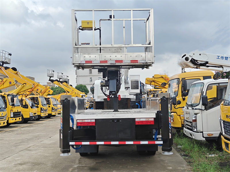 Lori la angani lenye uwezo mdogo wa kufanya kazi la Howo lina urefu wa juu zaidi wa kufanya kazi wa mita 22 na kipenyo cha juu zaidi cha uendeshaji cha mita 12. Linatumia mfumo wa kusawazisha tuli wa majimaji ili kuhakikisha uthabiti. Muundo wake wa kipekee wa kichocheo cha majimaji chenye umbo la H pamoja na utaratibu wa kufunga majimaji pande mbili huhakikisha uthabiti wakati wa operesheni. Lori la kuinua watu lenye uwezo mdogo la Howo pia lina mifumo miwili ya udhibiti wa mbali wa mwongozo na usiotumia waya. Jukwaa lina uwezo wa kubeba mzigo wa kilo 200, mzunguko wa majimaji wa 360°, na vipengele vingi vya usalama vilivyojengewa ndani, ikiwa ni pamoja na udhibiti wa kiotomatiki nje ya mipaka, kusimama kwa dharura, na kifaa cha ulinzi dhidi ya uvujaji.